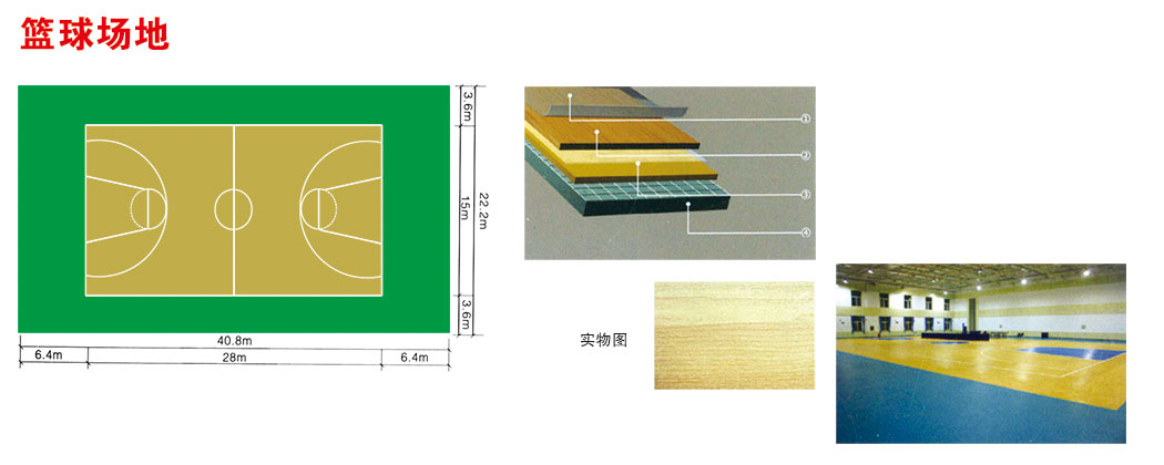 篮球标准比赛场地长28米,宽15米,篮球运动地板长不小于40.8米,宽不小于22.2米,总面积约906平方米。